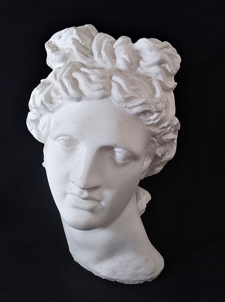 • Pesada escultura em estuque representando Efígie de Deusa Grega. Em excelente estado, 27 cm de altura.
