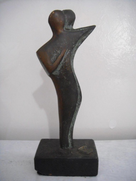 • ESCULTURA EM BRONZE PARA PESQUISA, VIDE DETALHES NAS FOTOS. MED 16 Cm Alt e 7 x 4 Cm.