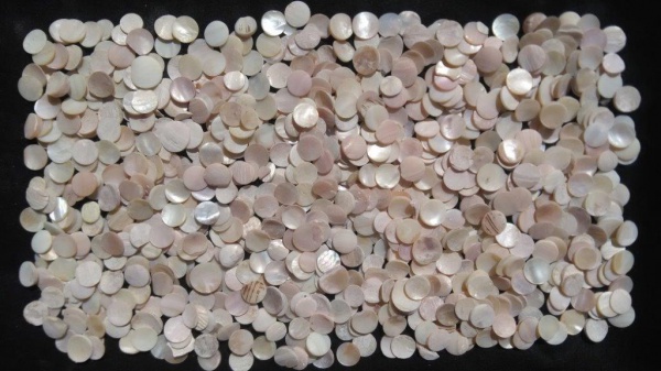 • OPORTUNIDADE !!! LOTE COM 1 Kg DE PEÇAS EM MADREPÉROLA, APROXIMADAMENTE 650 PEÇAS DE 2 Cm DE DIÂMETRO, VIDE DETALHES NAS FOTOS. NÃO PERCA !!!.