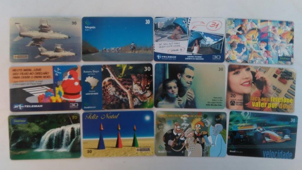 • Colecionismo: Lote com doze (12) cartões telefônicos antigos para colecionador, vide detalhe na foto.